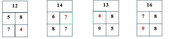 10 + 9 = 19 8 + 7 = 15 8 + 6 = 14 9 + 9 = 18