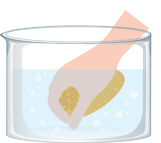 Thả mẩu đất khô vào nước thấy sủi bọt khí. Hiện tượng này cho biết mẩu đất rỗng và có chứa không khí.