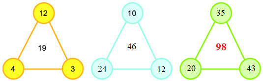 Do đó ta có nhận xét: Tổng ba số ở hình tròn bằng số ở trong hình tam giác.