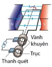 Khi khung dây quay đều trong từ trường, từ thông qua khung dây sẽ thay đổi tuần hoàn theo thời gian, dẫn đến việc tạo ra suất điện động cảm ứng xoay chiều trong khung dây. Suất điện động này có dạng hình sin, khiến cường độ dòng điện trong mạch xoay chiều theo thời gian. Do đó, bóng đèn sẽ sáng và nhấp nháy theo chu kỳ của dòng điện xoay chiều.