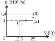 Quá trình biến đổi trạng thái từ trạng thái (1) sang trạng thái (2) là quá trình đẳng áp p1 = p2 = 1.105Pa.