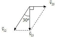\[{v_{13}} = \frac{{{v_{23}}}}{{\tan {{30}^^\circ }}} = \frac{{18}}{{\tan {{30}^^\circ }}} = 18\sqrt 3 {\rm{ km/h}} = 5\sqrt 3 {\rm{ m/s}}\]