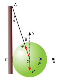 - Quả cầu cân bằng nên: \(\vec P + \vec N + \vec T = \vec 0\left( 1 \right)\)
