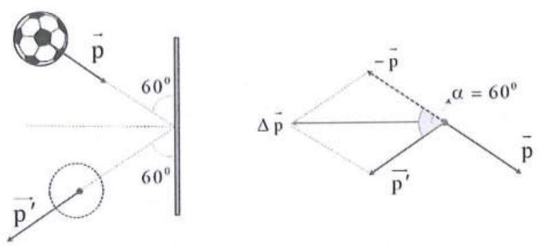 Tốc độ của bóng trước và sau va chạm bằng nhau nên động lượng có độ lớn như nhau, ta có: