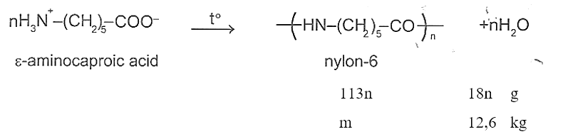 Trùng ngưng ε-aminocaproic acid thu được m kg capron và 12,6 kg H2O với hiệu suất phản ứng 90%. Giá trị của m là bao nhiêu?