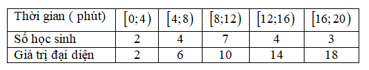 Tìm hiểu thời gian hoàn thành một bài tập ( đơn vị: phút) của một số học sinh thu được kết quả sau: