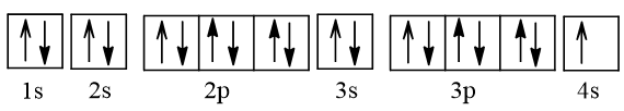 Potassium có 1 electron độc thân ở trạng thái cơ bản:
