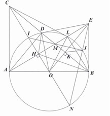 \[ \Rightarrow \widehat {IJN} = 90^\circ \,\,\left( 1 \right)\]