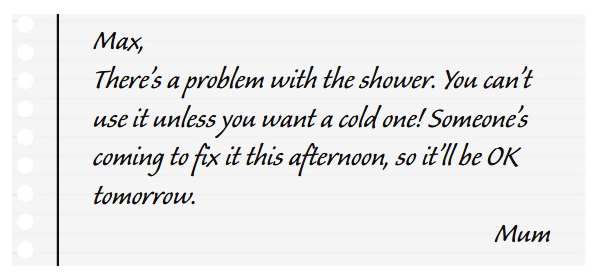 Mum needs Max to fix the shower.