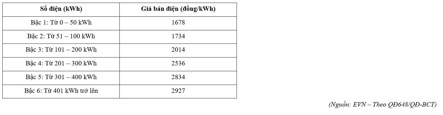 Bậc 1. Từ 0 đến 50 kWh (50 kWh).