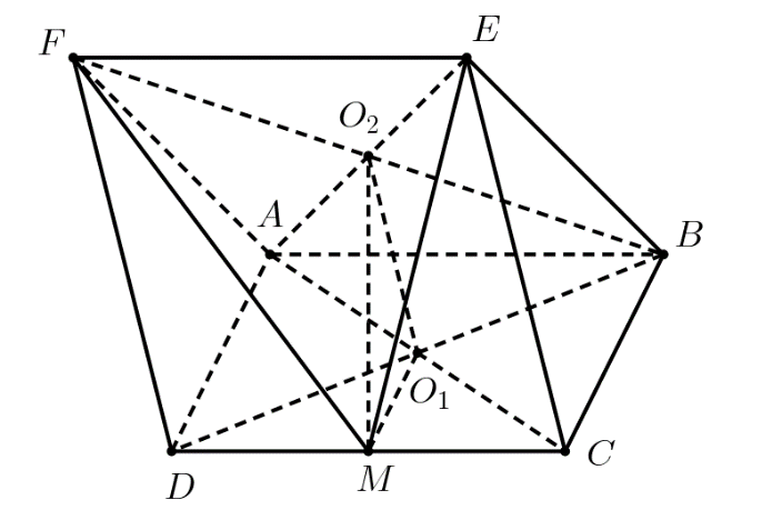 Cho hai hình bình hành \(ABCD\) và \(ABEF\) không cùng nằm trong một mặt phẳng. Gọi \({O_1},{O_2}\) lần lượt là tâm của \(ABCD\,,\,ABEF\). \(M\) là trung điểm của \(CD\). Chọn khẳng định sai trong các khẳng định sau