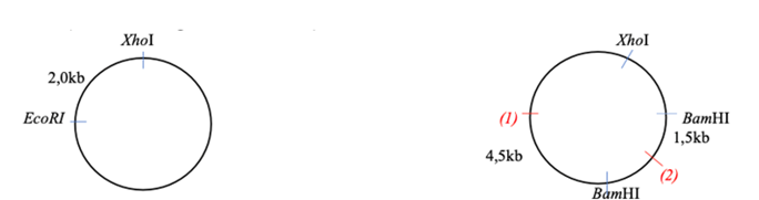 BamHI có 2 vị trí cắt và và XhoI có 1 vị trí cắt. |