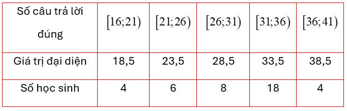 Các bạn học sinh lớp 11A1 trả lời 40 câu hỏi trong một bải kiểm tra. Kết quả được thống kê ở bảng sau: