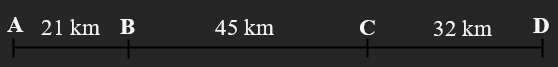c) Quãng đường AC dài là 76 km. Sửa: Quãng đường AC dài là: 21 + 45 = 66 km. |