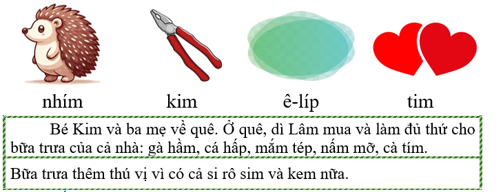 a) 4 từ có vần “im” là: kim, tim, chim, nhím.