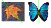 Chiếc lá và con bướm đều có một trục đối xứng và không có tâm đối xứng.