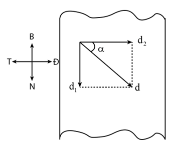 \[\tan \alpha = \frac{{{d_1}}}{{{d_2}}} = \frac{{50}}{{50}} = 1 \Rightarrow \alpha = {45^0}\]