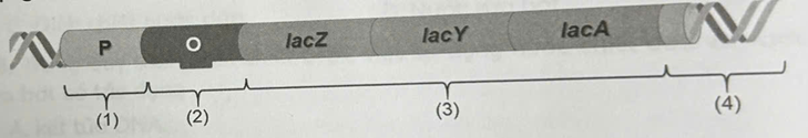 - Cấu trúc số (1) – vùng promoter là vị trí enzyme RNA polymerase bám vào để phiên mã nhóm gene cấu trúc lacZ, lacY, lacA.