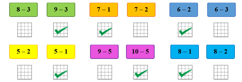 vào ô trống dưới phép tính có kết quả lớn hơn.