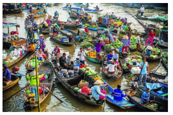 - Người buôn bán và người mua đều đi lại bằng ghe, xuồng, tắc ráng trên sông.