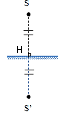 − S và S’ đối xứng nhau qua gương phẳng nên khoảng cách từ S đến gương bằng khoảng cách từ S’ đến gương hay SH = S’H (1)