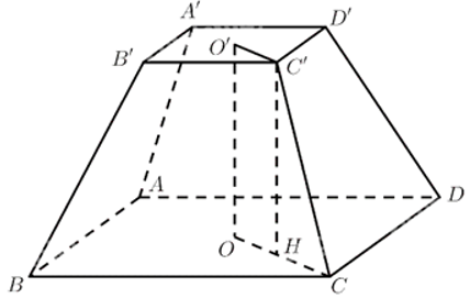 Mô hình hoá chân tháp bằng cụt chóp tứ giác đều ABCD.A′B′C′D′ với O, O′ là tâm của hai đáy.
