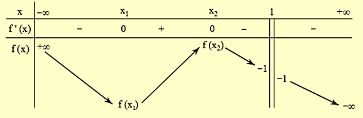Từ bảng biến thiên ta có phương trình (*) có hai nghiệm phân biệt khác 1