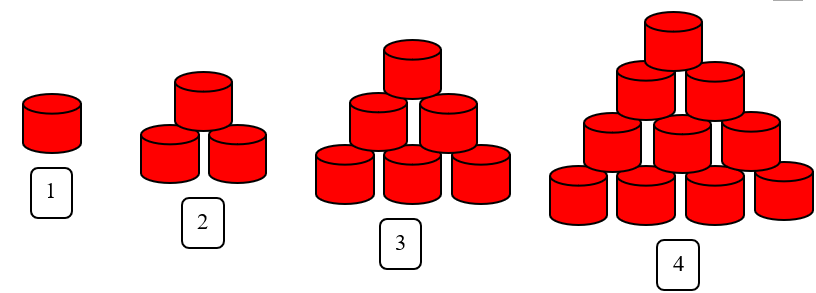 Xếp các hộp có dạng khối trụ thành các hình theo cách sau: