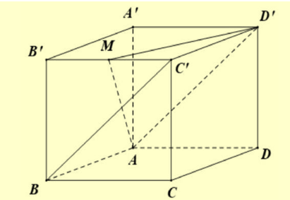 Ta có: \(BC'//AD' \Rightarrow \left( {BC',AM} \right) = \left( {AD',AM} \right) = \widehat {D'AM}\).