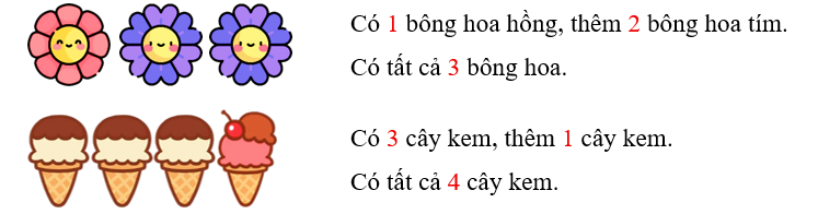 Có…..bông hoa hồng, thêm…..bông hoa tím. Có tất cả…..bông hoa.