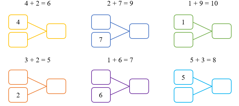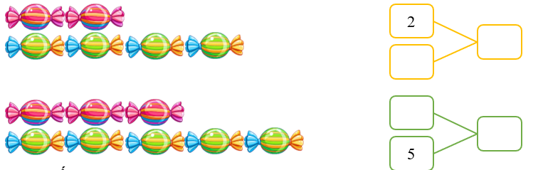 Sơ đồ thích hợp với phép tính “2 + 5 = 7” là: