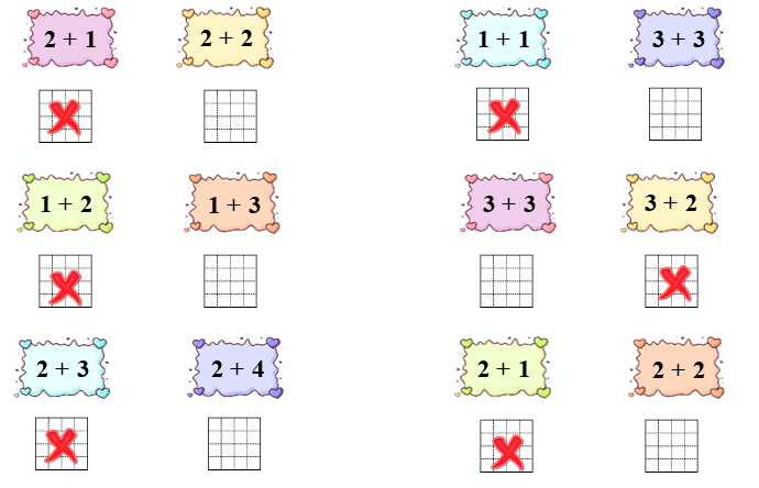 ) vào ô trống dưới phép tính có kết quả bé hơn.