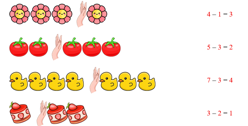 Phép tính thích hợp với hình vẽ bên là: 4 – 1 = 3