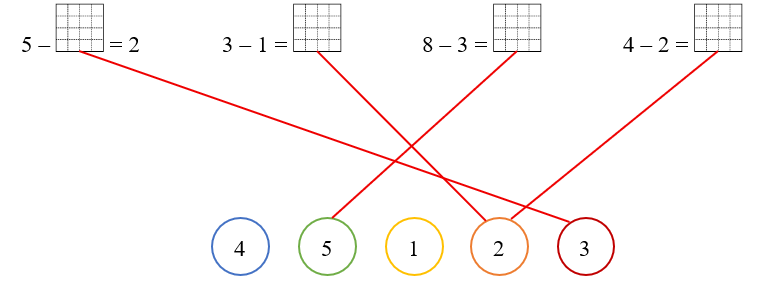 Phép tính thích hợp với hình vẽ bên là: 4 – 1 = 3