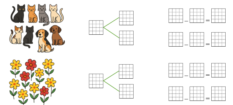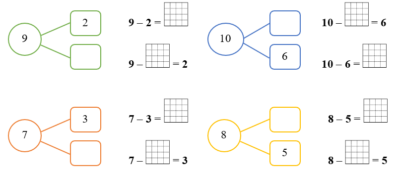Phép tính thích hợp với sơ đồ bên là: 6 – 4 = 2