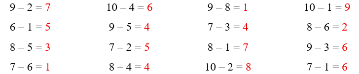 Phép tính thích hợp điền vào chỗ chấm là: 9 – 7