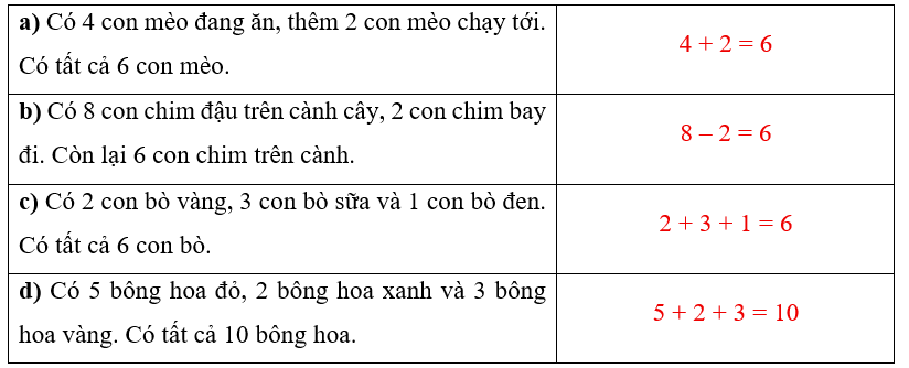 (a) Có 4 con mèo đang ăn, thêm 2 con mèo chạy tới. Có tất cả 6 con mèo.