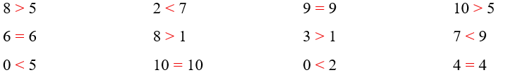 b) So sánh: 10 > 9 > 7 > 6 > 5 > 2 > 0