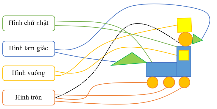 vào ô trống dưới các đồ vật hình chữ nhật.