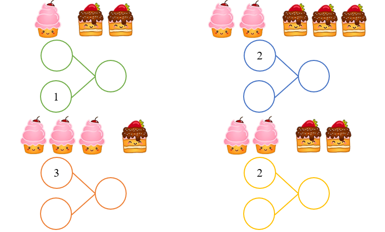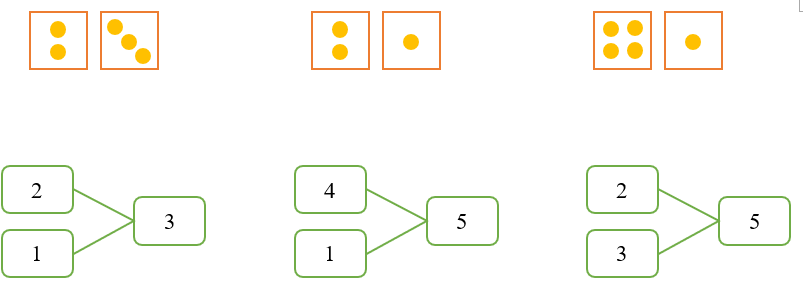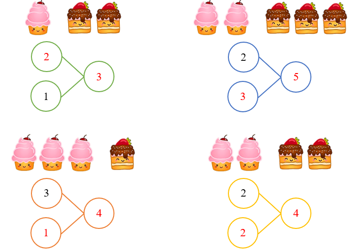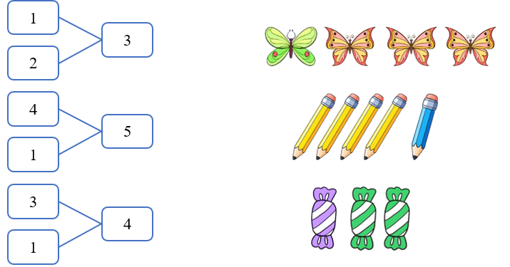 Có 2 quả bóng bay màu xanh và 3 quả bóng bay màu vàng. Vậy có tất cả 5 quả bóng bay.