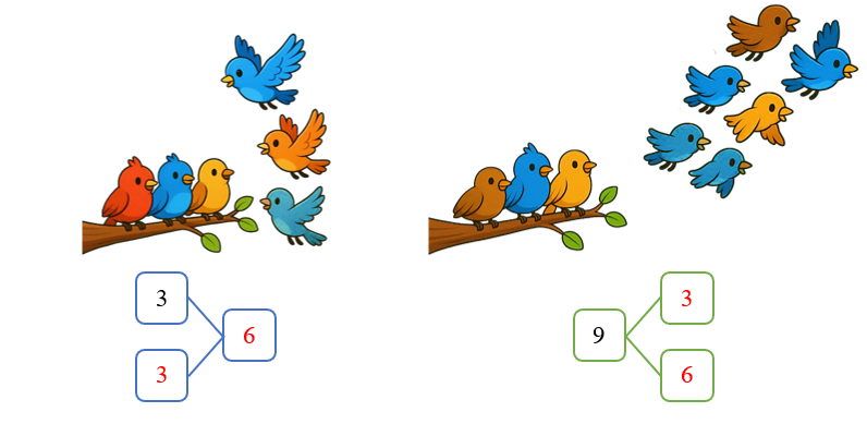 Có 6 con vật gồm 3 con mèo và 3 con chó