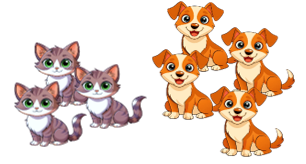 Có 7 con vật gồm 4 con chó và 3 con mèo