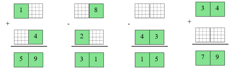 A. 56 + 13 = 69 B. 68 – 31 = 37