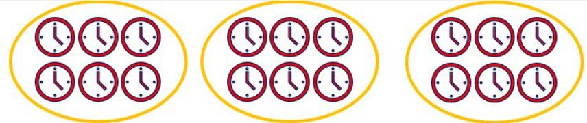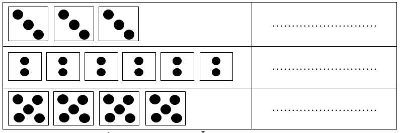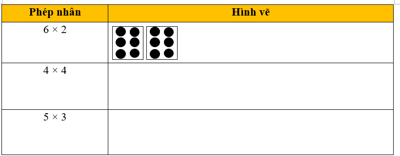 Hình B: 6 được lấy 3 lần, ta có phép nhân 6 × 3