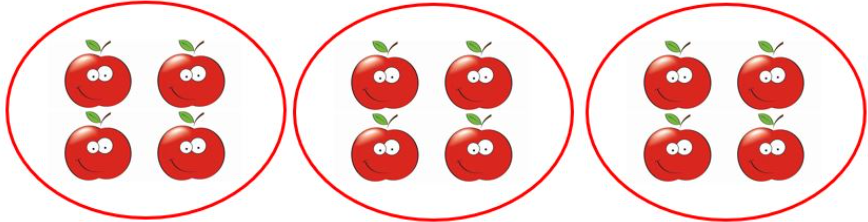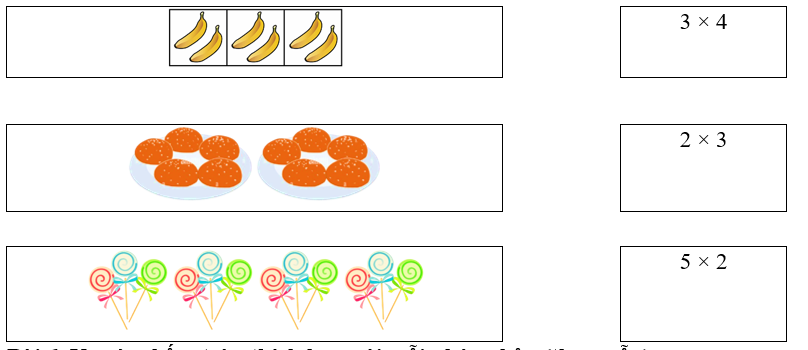 Hình A: 3 lấy 4 lần, ta có phép nhân 3 × 4