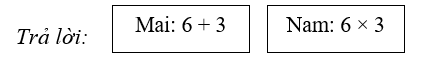 Mỗi hộp có 6 bút chì. Có 3 hộp bút chì. Như vậy 6 được lấy 3 lần. Ta có phép tính: 6 × 3