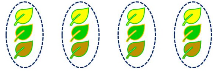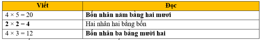Hình D: 4 được lấy 3 lần, ta có phép nhân 4 × 3