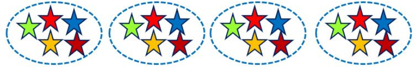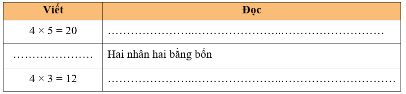 Hình C: 5 được lấy 4 lần, ta có phép nhân 5 × 4