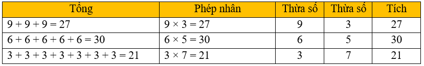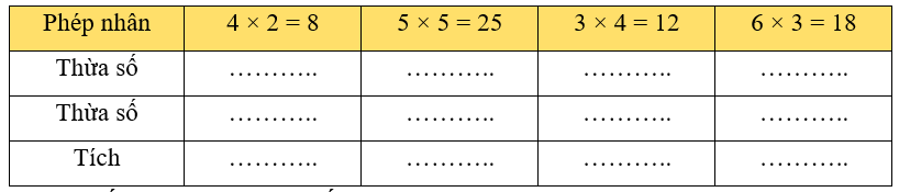 a) Các thừa số là 9 và 6, tích là 54: 9 × 6 = 54