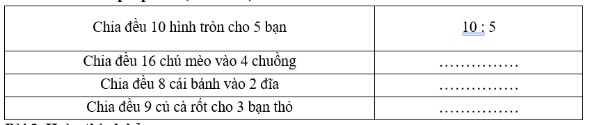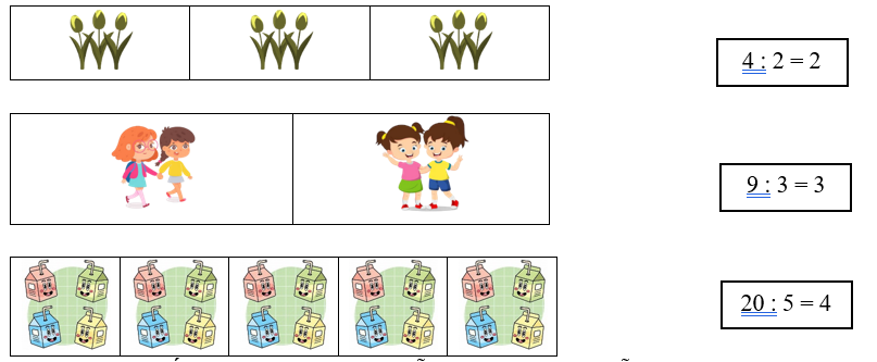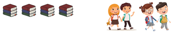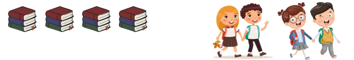 a. Có 12 quyển sách, chia đều cho 4 em học sinh, mỗi em được 3 quyển sách.
